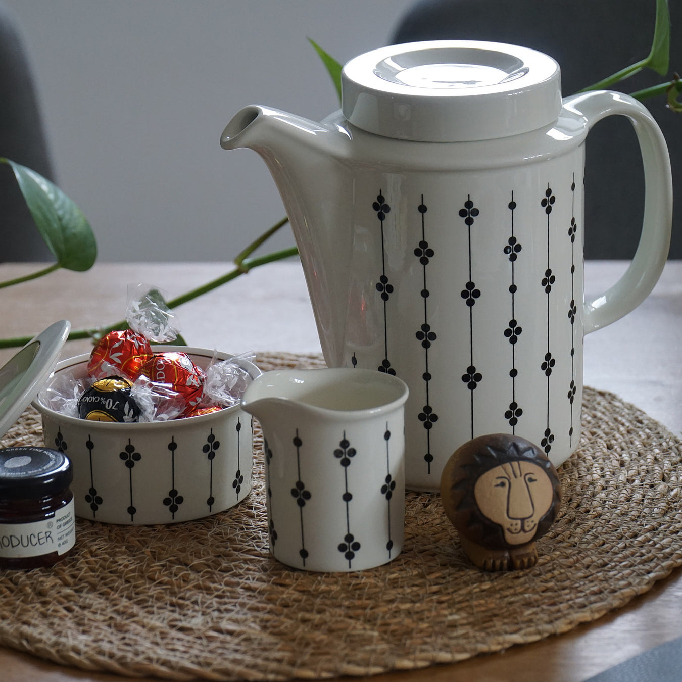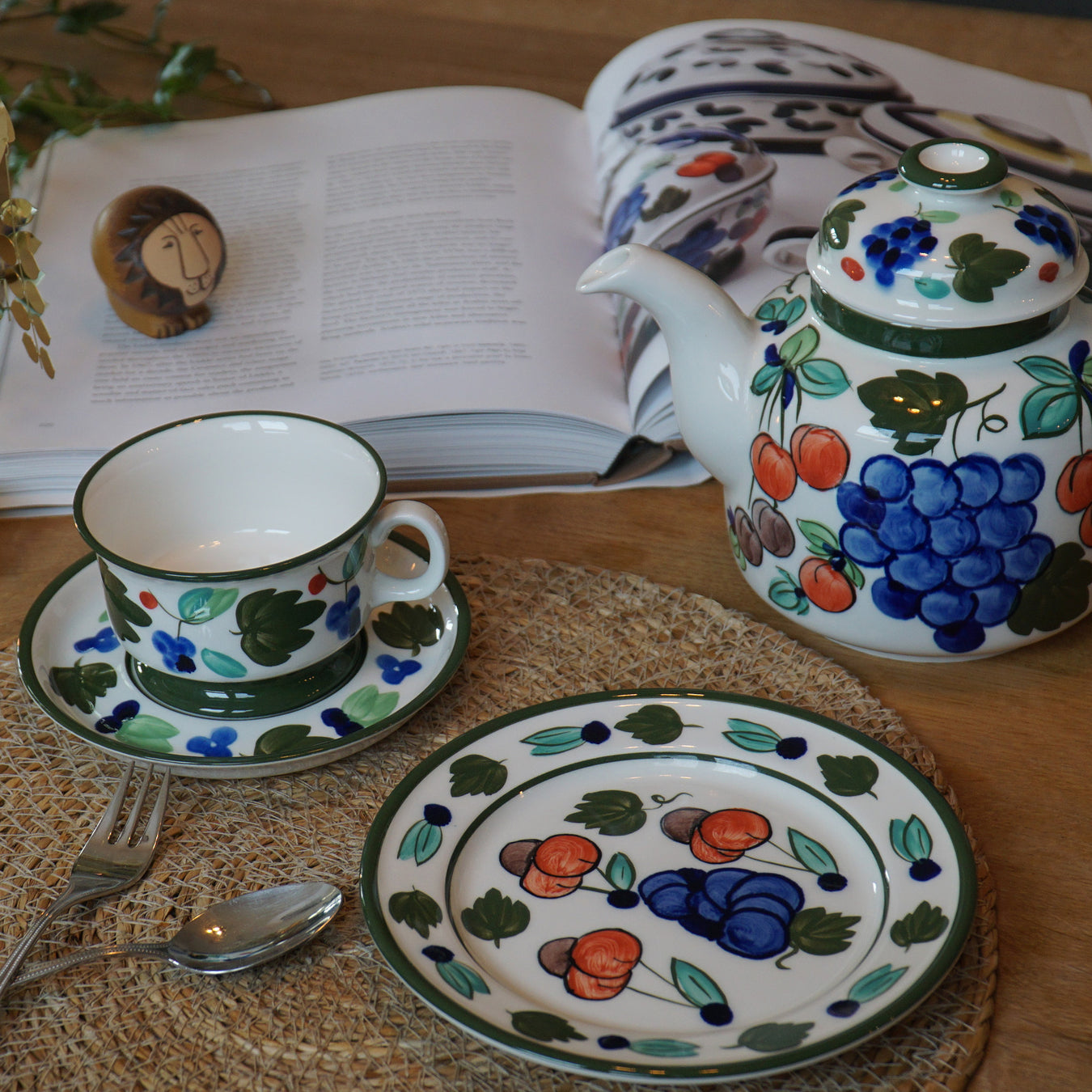 Vollständige Details anzeigenHerkunftsland: Finnland Hergestellt von: Arabien Set: Uhtua Design der Form: Ulla Procopé Design der Dekoration: Inkeri Leivo Baujahr: 1982-199...
